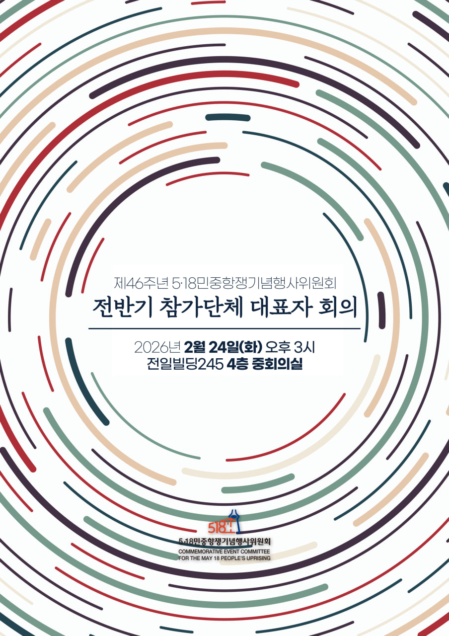제46주년 5·18민중항쟁기념행사위원회<전반기 참가단체 대표자 회의>일 시 : 2026년 2월 24일(화) 오후 3시장 소…