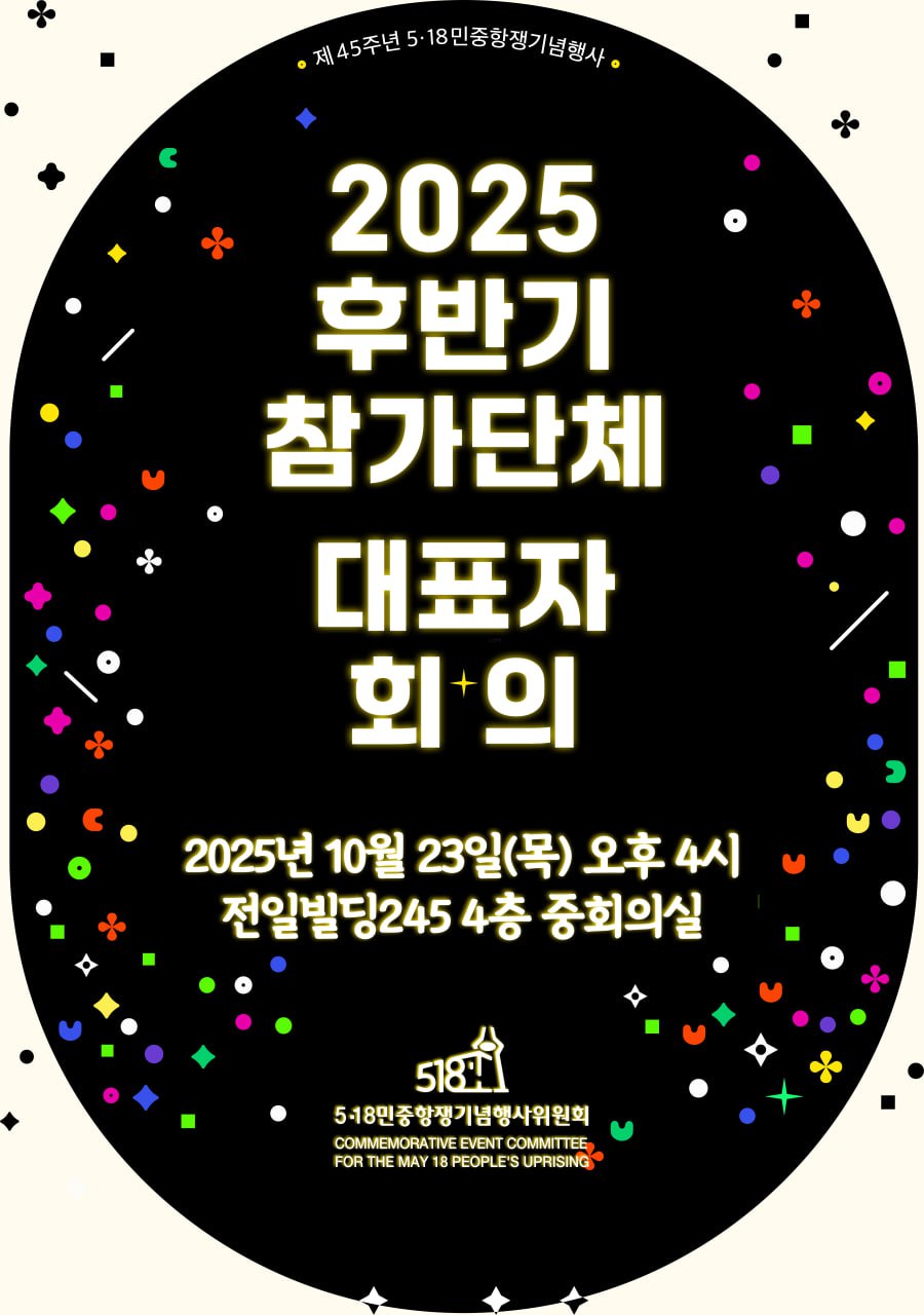 - 2025 제45주년 5·18민중항쟁기념행사위원회 후반기 참가단체 대표자회의를 소집합니다. 2025-10-02